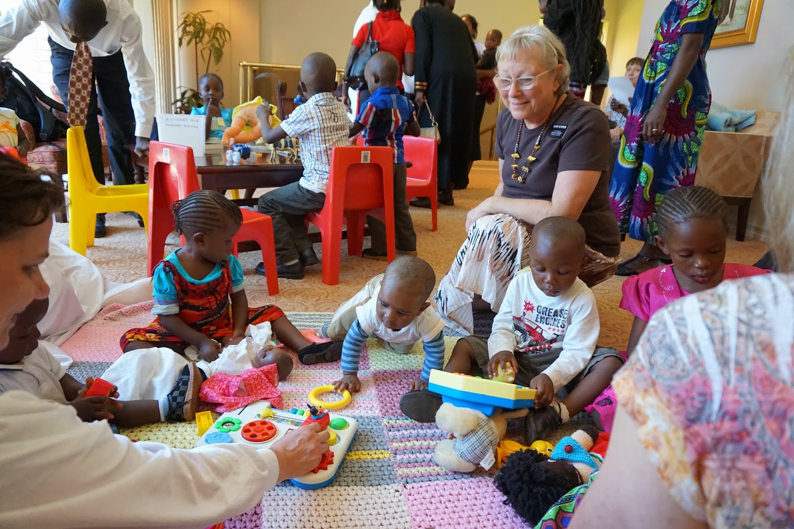 David and Carol Van Wagoner are next (David is facing away). They live in Burundi and are part of the DR Congo Lubumbashi mission. Next are Lester and Joan Moody. They are part of the DR Congo Kinshasa mission but live in Gabon and have responsibility for Gabon, Cameroon, and the Central Africa Republic (all French Speaking countries).